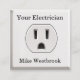 Coole moderne elektrische Visitenkarten Online-Vorlage mit einem grafischen Bild einer Steckdose in einem eleganten, zweiseitigen Design, das zwei Seitenaufdrucke enthält. Erstellt für einen Handwerker, unabhängigen Elektriker oder Master Electrical Contractor.