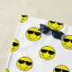 Ein Muster cooler gelber emoji Gesichter mit Sonnenbrillen bedeckt dieses Tuch. Ein gelbes Band auf dem unteren Rand hat einen Namen im schwarzen Text, damit Sie personifizieren. Vervollkommnen Sie für den Strand oder den Poolside!