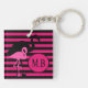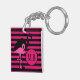 Lebhafte rosa und schwarze Streifen mit cooler Flamingo-Silhouette-Design auf mit Monogramm Schlüsselanhänger.