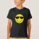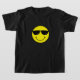 Das gelbe Gesicht auf der Front dieses Shirts trägt schwarze das cooles Sonnenbrillen und Gefühl.
