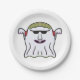 Cooles Ghost trägt Schattierungen und Kopfhörer und Wellen beängstigende Arme mit einem Lächeln.