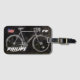 Eine coole digitale Abbildung eines grauen Fahrrads auf schwarzem Hintergrund.. um den Namen des Radfahrers hinzuzufügen und Ihr Gepäck sicher behalten.