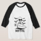 Halloween T Shirt Ein Skelett in einer Sonnenbrille, mit einem Surfbrett, mit Fledermäusen, die herumfliegen.