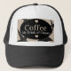 Hier ist ein toller Hut für den Kaffeetrinker. Ein cooles Kaffeedesign, ein Mochahintergrund mit zufälligen schwarzen Sternen. Ein schwarzes Oval mit einer großartigen Kaffeemaske.
