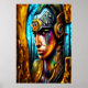 Ein buntes Portrait eines coolen Kriegers mit einem einzigartigen Kriegerhelm auf seinem Kopf. Das ist eine künstlerische KI.
