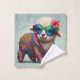 Dieses Bild zeigt ein niedliches Lamm, das in einem lebendigen, gemusterten Anzug gekleidet ist und eine Sonnenbrille trägt, was dem Bild eine lebendige und unterhaltsame Persönlichkeit verleiht. Auf dem rechten Ohr des Schafes wird eine Blume gelegt, die dem Charakter noch mehr Charme verleiht. Dieses farbenfrohe Schaf ist Set vor einem hellen Hintergrund und betont die lebhaften Details der Schafbekleidung. Die Helligkeit der Farben und die spielerischen Details verleihen dem Bild ein fröhliches und auffälliges Ambiente.