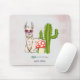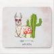 Ein Mousepad illustriert mit einem niedlichen Lamm mit einer herzförmigen Sonnenbrille. Ein roter, gepunkteter Pilz, ein Boho-Pfeil und ein grüner Kaktus ergänzen die Abbildung. Whimsical und niedlich.