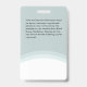 Dieses moderne Mitarbeiter-ID-Abzeichen besticht durch ein elegantes Farbblockdesign in cool türkisblau und weiß mit schwarz. Das Design zeigt den Mitarbeiternamen in fett gedruckten Buchstaben, das Foto des Mitarbeiters in einem speziellen, in einen Kreis geklippten Platzhalter mit dünnen weißen Rahmen und den Mitarbeitertitel/ die Position. Das Identifizierungszeichen-Abzeichen bietet eine Option für das Firmenlogo und den Firmennamen oben. Andere persönliche Informationen wie ID, Telefon und E-Mail können am unteren Ende der Seite eingegeben werden. Auf der Rückseite können weitere wichtige Informationen zum Mitarbeiter angegeben werden. Das Design zeigt ein neuartiges Design mit eleganten Kurven und Farben. Sie können auch zusätzlichen Text auf der Rückseite der Karte für die Firmen-Tag-Zeile oder Slogan hinzufügen.