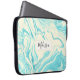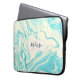 Ein eleganter und raffinierter Laptop-Ärmel mit elegantem Marmormuster aus Imitat und wirbelfarbenen türkisblauen und cremefarbenen Tönen. Ein cremefarbener Rahmen mit goldgelbem Rahmen überlagert mit einem personalisierten Namen innen.