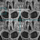 Gothic grunge Schwarz-Weiß Schädel Kopf nah nach oben Nähmaterial Design. Geräumig, gruselig, böse, finstere, makabre Gewebe. Cooles, trendiges, einzigartiges, modernes, beängstigendes Halloween-Muster. Bildrecht Marg Seregelyi Fotografie.