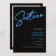 Cooles Neon-Blue-Script Retro Schwarzes Foto Sweet Einladung