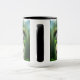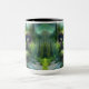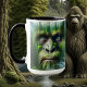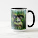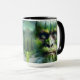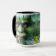 Eine Darstellung von Bigfoot in einer coolen doppelten Exposition mit Wald, Fluss und Bergen. Coole Sasquatch-Kaffeetasse.