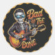 Cooles Skelett Bad to Bone mit Gitarre Runder Aufkleber