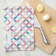 Küchenhandtuch in den Farben Korallenorange, Beige, aquamarin grünes Blau, Blassblau, lila und weiß in einem Kreise Stil mit einem Monogramm in blau auf weiß. Ideal, um etwas Interesse an Ihrer Küche zu wecken. Dieses Design hat viele verschiedene Farbtöne, die Ihnen bei der Farbkoordinierung helfen, und ein Monogramm für eine personalisierte Touch. Grafik und Design von www.myittleeden.com