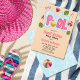 Diese niedliche und lustige Poolparty mit Party-Motiven zum 16. Geburtstag lädt zum Sommer oder Frühling ein. Hier finden Sie handgezeichnet Illustrationen wie Schwimmbecken, Ananas-Getränk, eine Kugel, Monster-Blätter, Eis, einen Popkel, eine Wassermelone, Wasser und eine Herzbrille. Die Farbgestaltung umfasst kräftiges Rosa, Gelb, Grün, Rot, Blau und Sandpfirsich. Es ist spielerisch, cool, modern, einfach und einzigartig; das perfekte Design für ein lustiges Ereignis. ***WICHTIGE HINWEIS FÜR DESIGN: Für individuelle Designanfragen, wie zum Beispiel passende Produkte, Farbänderungen, Platzierungsänderungen oder andere Änderungswünsche, senden Sie bitte eine Nachricht an den Designer. Sie können sogar eine Anfrage für ein komplett individuelles und neues Design stellen.