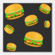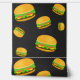 Cooles und lustiges Hammermuster dunkelgraues Tapete. Cooles und lustiges Burgermuster auf individuellem Hintergrund. Yummy Vektorgrafik mit Toasty Sesam Bun mit Fleisch, Salat, Tomaten und Käse.
