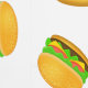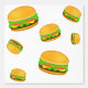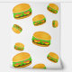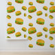 Coole und lustige Yummy Hamburger-Muster weißes Tapete. Cooles und lustiges Burgermuster auf individuellem Hintergrund. Yummy Vektorgrafik mit Toasty Sesam Bun mit Fleisch, Salat, Tomaten und Käse.
