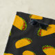 Persönlich gestalten Sie ein einzigartiges Badetuch mit Ihrem ersten und Namen. Cooles und lustiges Taco-Muster auf dunkelgrauem Hintergrund. Yummy Vektorgrafik aus Toasty Tortilla mit Fleisch, Salat, Tomaten und Kohl.