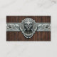 Cooler kundengerechter universeller Geschäftskartenentwurf mit einem Farbbild eines Haupttürklopfers des stilvollen und eleganten Vintagen antiken Löwes, des passend für viele Unternehmen oder Privatpersonen. Details können durch die Personifizierungswahlen, mit voller Kundenbezogenheit über eingeführt werden "besonders anfertigen es" Knopf.