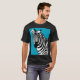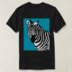 Cooles Zebra-Tier-Shirt. Bunter Kunst-Entwurf, der Zebra mit blauem Farbehintergrund zeichnet.