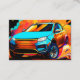 Kühne trendige Automobil-Visitenkarten in einem Pop-Kultur-Stil Pop-Kunst farbigen Design auf der Vorderseite mit Ihren Kontaktdaten organisiert auf der drehend Seite in einer bearbeitbaren Vorlage für Unternehmen in der Automobilsicherheit, Audio-Systeme, Zoll oder Malerei.