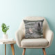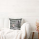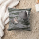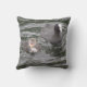 Dieses phantastische Kissen zeigt ein Foto von einem Coot und ihrem Küken, das auf einem Flussufer schwimmt. Das Weibchen ist grau mit einem weißen Pflaster auf dem Kopf und roten Augen, während das winzige, flauschige Küken mit einer weißen Vorderseite blassgrau ist.