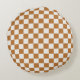 A brown and white checkerboard pattern fills the image. The square tiles are evenly spaced, creating a uniform and orderly geometric design.