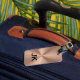 Elegant monogrammed copper brown metallic luggage tag with a stainless steel appearance. Customize with your information in black text. Please note, the material is not actual stainless steel but rather an image resembling steel.