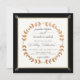 Dieser handgezeichnete Lorbeerblattkranz wurde mit einem Kupferkunstdesign gefüllt und mit Rose Gold für eine sehr moderne romantische und elegante Hochzeitssuite hervorgehoben. Sie können die Farbe des äußeren Randes und der Rückseite in jede Farbe ändern, die Sie entwerfen, hier in einem kühnen, tiefen ebonischen Schwarz dargestellt. Art Copyright Audrey Jeanne Roberts.