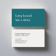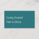 A modern, minimalist business card perfect for copywriters and freelance writers. The front features teal background with the phrase "Every brand has a story" in soft, off-white text. The reverse has an off-white background with dark grey text and space for your contact details. All text on the card if fully editable.