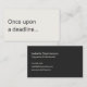 A modern, minimalist business card perfect for copywriters and freelance writers. The front features a soft cream background with the humorous phrase "Once upon a deadline..." in charcoal grey text. The reverse has a dark charcoal background with cream text and space for your contact details. All text on the card is fully editable.