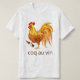 Humorvoller T - Shirt mit einem herrlichen goldenen Hahn, der eine Flasche Wein hält.