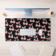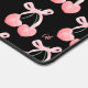 Coquette ästhetische rosa Wasserfarbenbogen und Kirschen große Computer-Schreibtischmatte personalisiert mit einem 2 Buchstaben Monogramm und einem schwarzen Hintergrund.
