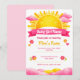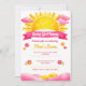 Celebrate a sweet baby girl arrival with this sunshine baby shower design featuring a glowing sun, soft pink clouds, and delicate floral accents. The warm yellow and blush tones create a cheerful and inviting atmosphere, perfect for a sunshine themed baby shower. This charming illustration blends playful sun elements with a soft feminine style, making it ideal for creating a joyful and memorable celebration.