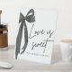 Die Coquette Black Bow Liebe ist Sweet Leckerei Fevor Sign fügt eine Touch von Charme und Eleganz zu Ihrem Brautparty oder besondere Veranstaltung. Mit einem stilvollen schwarzen Bogen-Design und der Phrase "Liebe ist süß", ist dieses Schild ideal, um Ihre Leckerei oder Ihren Lieblingstisch hervorzuheben. Es ist eine elegante Art, Ihren Gästen zu danken und ein unvergessliches, bildschönes Ambiente für Ihre Feier zu schaffen. 🎀 ✨ 🍬