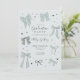 Vintage und coquette Graduation Party Einladungskarte mit Illustration von blauen Bögen und Herzen.