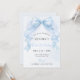 Our elegant "Coquette Blue Lace Bow Boy First Birthday Invitation" features a large watercolor blue bow with a lace border and soft lighting, perfect for celebrating your baby boy's first birthday, and can be customized to suit any age.