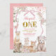 Coquette Blush Pink Spring woodland animals First Birthday Invitation