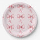 Cute and coquette birthday party paper plates featuring illustration of pink bows and hearts.