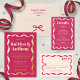 Feiern Sie stilvoll mit diesen sehr trendigen Retro-coquette Stil Hochzeitskarten. Das Design lässt sich einfach mit Ihren eigenen Details personalisieren und Ihre Gäste werden begeistert sein, wenn sie diese fantastischen Karten zusammen mit den entsprechenden Einladungen erhalten. In der Sammlung finden Sie passende Artikel wie die Einladungen zur Hochzeit und die RSVP-Karten.