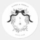 Fügen Sie Ihren Gastgeschenke Hochzeiten eine zeitlose Touch mit diesem Coquette Bow Wappen Monogram French Wedding Classic Round Sticker hinzu. Dieser Aufkleber mit einem üppigen botanischen Vintagen Wappen und elegantem französischem Monogramm verkörpert eine raffinierte alte Geldästhetik. Perfekt für die Abdichtung von Einladungen, Gaumenbeutel oder Dekoration, bringt es knuddeligen Charme und Viktorianische Eleganz zu Ihrer Hochzeitsfeier!