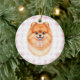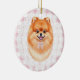 Coquette Brown Pomeranian Dog Pink Gingham Bows Keramik Ornament