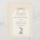 Sweet coquette-style gingham birthday invitation for a first birthday celebration. Designed to announce your little ones special day with a soft, charming bunny theme. Ideal for first birthday parties, family gatherings, and keepsake invites. Editable text. Print-ready design.