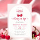 Mit dieser Coquette Cherry Baby Shower Einladung fügen Sie Ihrer Babydusche eine spielerische und elegante Touch hinzu. Der zarte rosa Bogen, gepaart mit glänzenden Aquarellkirschen, schafft eine süße und feminine Ästhetik, perfekt zum Feiern eines kleinen Mädchens. Die moderne Schrift und die sanften Farben machen diese Einladung zu einer unwiderstehlichen Wahl für eine schicke Babydusche.