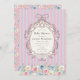 Share your joy for a new baby with this delightful pink and blue floral baby shower invitation. The front of the invitation showcases a lovely pattern of watercolor roses and elegant vertical stripes, creating a sweet and inviting atmosphere. The main event details are beautifully presented within an ornate frame, and a convenient QR code is placed on the back for effortless online RSVPs. This invitation is a perfect blend of traditional charm and modern practicality, ensuring your guests are informed and excited for your special celebration.