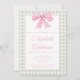 Coquette Pink Bow and Sage Gingham Baby Dusche Einladung