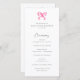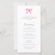 Coquette Pink Bow Simple Wedding Programm