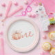Diese elegante und charmante Papiertafel aus dem ersten Geburtstag zeigt eine schöne Aquarellbild eines Kürbisses mit einem zarten rosa Band, das perfekt zum Feiern des 1. Meilensteins Ihres Kleinen geeignet ist.