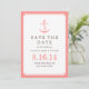 Stilvoll speichern Sie die Datumsangaben für eine sommerliche oder tropische Hochzeit in Urlaubsort, indem Sie auf der Rückseite ein Ankerbild und ein elegantes Segel-Muster zeigen. Besuchen Sie unseren Shop für weitere Farboptionen und passende Produkte.