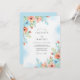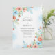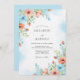 An ethereal watercolor design unfolds with soft coral blooms and delicate blue foliage, evoking a gentle, romantic ambiance. Subtle washes of sky blue add a touch of airy elegance to this artistic composition. This creation whispers of lighthearted romance and natural beauty.